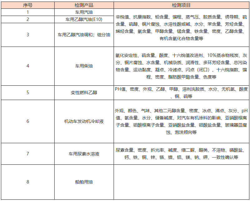 科检检测提供标准化油品检测服务,可依据车用汽油、车用乙醇汽油、车用乙醇汽油调和组分油、车用柴油、机动车发动机冷却液、变性燃料乙醇、车用尿素等产品多项标准及其他地方标准,开展产品标准中辛烷值、硫含量、水分、密度、乙醇、铅等全项目标准化检测服务。